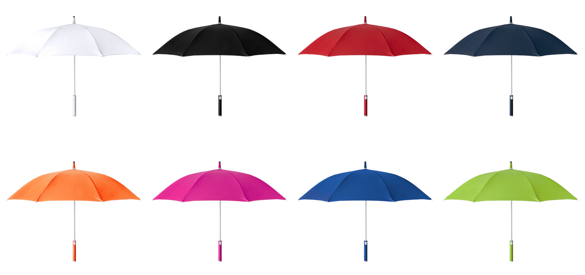 Paraguas de 105 cm de diámetro, fabricado en resistente poliéster 190T RPET (plástico reciclado) que combina durabilidad y sostenibilidad. Su sistema de apertura automática y las varillas de fibra de vidrio antiviento garantizan resistencia incluso en días de lluvia y viento.
